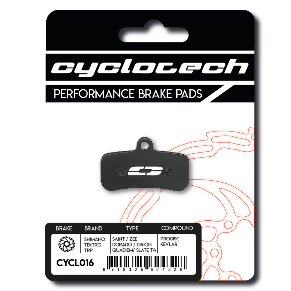Cyclotech Components is een Nederlands merk dat sinds 2015 veilige en betrouwbare remblokken van hoogwaardige kwaliteit ontwikkelt. Zowel voor recreatief als competitief gebruik. De Kevlar compound is de slimme instap-upgrade in de hoogwaardige Cyclotech Prodisc lijn. Deze schijfremblokken combineren de voordelen van organische remblokken (uitstekende initiële 'bite' en modulatie) met de verhoogde duurzaamheid van Kevlar-vezels.